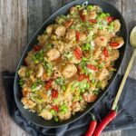 The secret to a delicious, oven-baked Imam Bayildi is to bake the aubergines for a long time. Aubergines become sweeter and delicious, just like fried ones, with only about 1/4 of the olive oil. I bake them first with just a little oil, then I add the tomato sauce, then finish with the orzo. During the last stage of baking, the orzo becomes caramelized at places and becomes heavenly delicious.