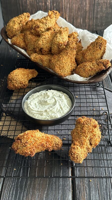 Φτερούγες κοτόπουλου στο φούρνο με ντιπ μπλε τυριού