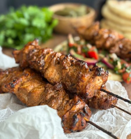 Aromatic Chicken kebab with pan-cooked pita